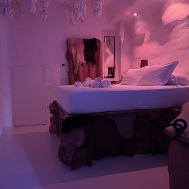 Fatti accompagnare… Sotto una doccia rinvigorente o in un calmo o frenetico riposo nel letto sui tronchi secolari e pelli. Forse potresti voler provare la vicinanza più assoluta con il tuo partner e sperimentare un simpatico lettino su assi di legno…